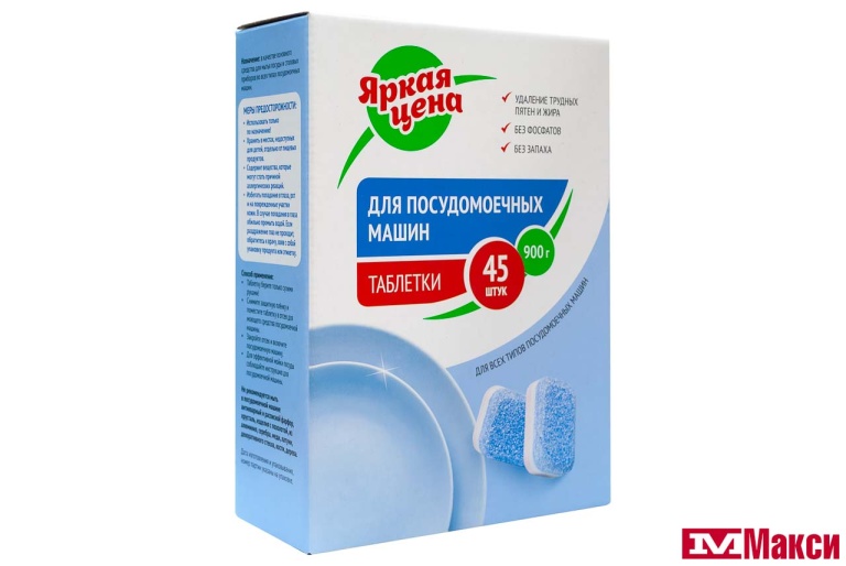 СРЕДСТВО ДЛЯ ПОСУДОМОЕЧНОЙ МАШИНЫ "ЯРКАЯ ЦЕНА" В ТАБЛЕТКАХ 45ШТ