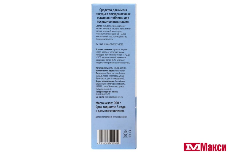сульфат натрия, карбонат натрия, лимонная кислота, метасиликат натрия, перекарбонат натрия, тетраацетилэтилендиамид (ТАЭД), неионогенный пав, поликарбонаты, пищевой краситель