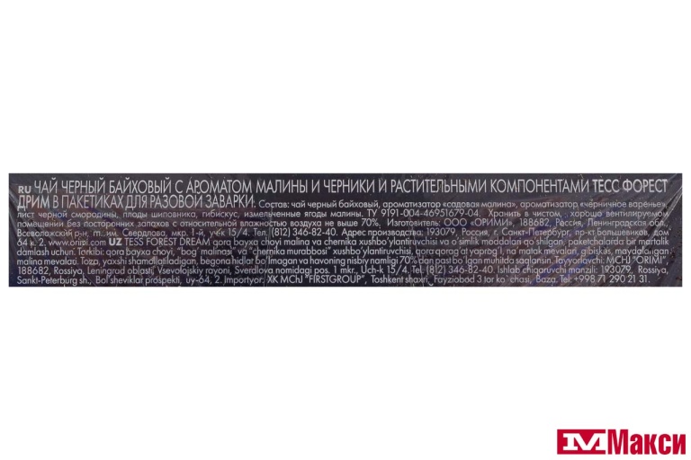 ЧАЙ "TESS" FOREST DREAM ЧЕРНЫЙ С МАЛИНОЙ И АРОМАТОМ ЧЕРНИКИ 20 ПАКЕТИКОВ-ПИРАМИДОК (ОРИМИ-ТРЭЙД)