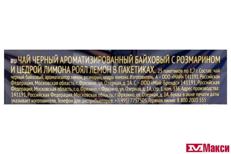 чёрный байховый чай, ароматизатор лимон, розмарин, цедра лимона