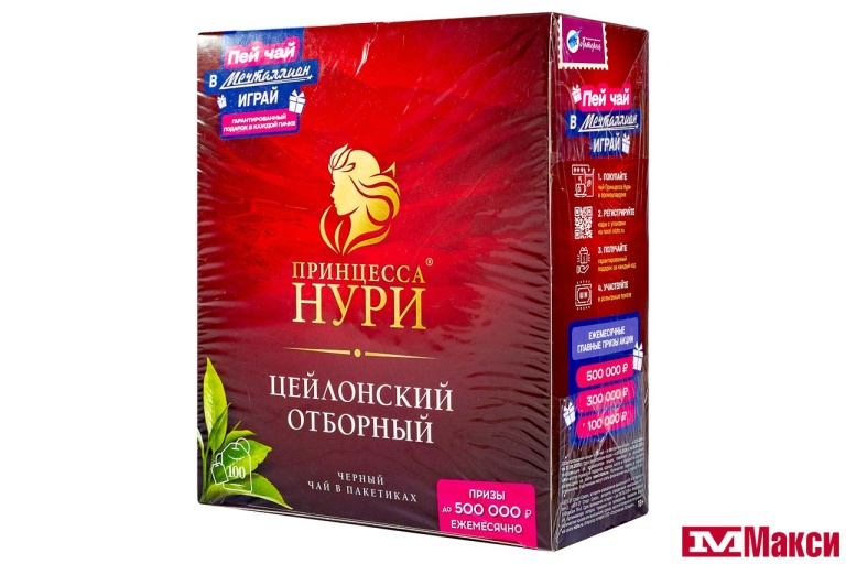 ЧАЙ "ПРИНЦЕССА НУРИ" ЦЕЙЛОНСКИЙ ОТБОРНЫЙ ЧЕРНЫЙ 100 ПАКЕТИКОВ (ОРИМИ-ТРЭЙД)