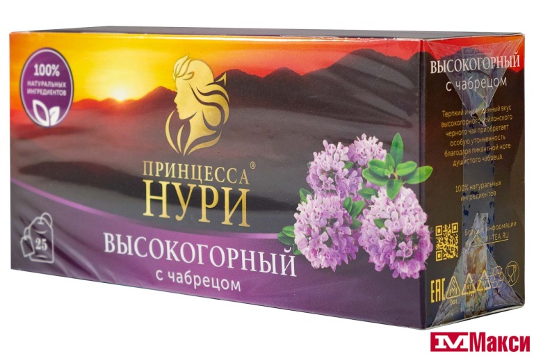 ЧАЙ "ПРИНЦЕССА НУРИ" ВЫСОКОГОРНЫЙ С ЧАБРЕЦОМ ЧЕРНЫЙ 25ПАКЕТИКОВ (ОРИМИ-ТРЭЙД)