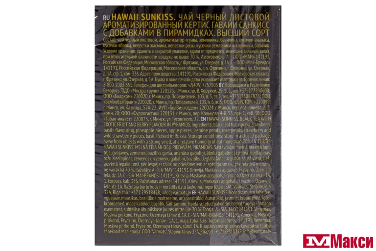 ЧАЙ "CURTIS" HAWAII SUNKISS ЧЕРНЫЙ 20 ПАКЕТИКОВ-ПИРАМИДОК (МАЙ)