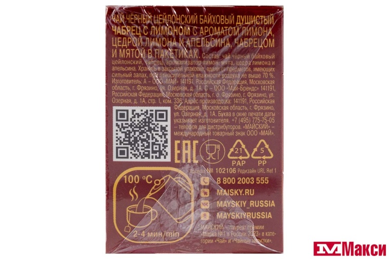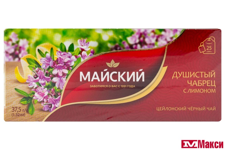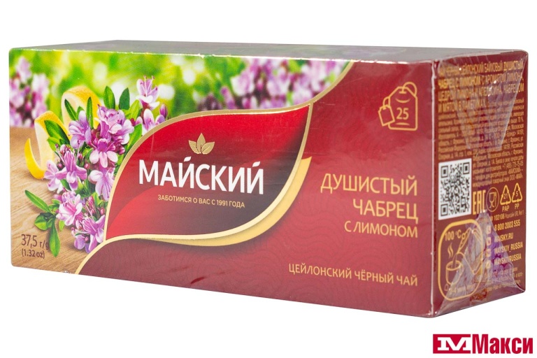 ЧАЙ "МАЙСКИЙ" ДУШИСТЫЙ ЧАБРЕЦ С ЛИМОНОМ ЧЕРНЫЙ 25 ПАКЕТИКОВ (МАЙ)