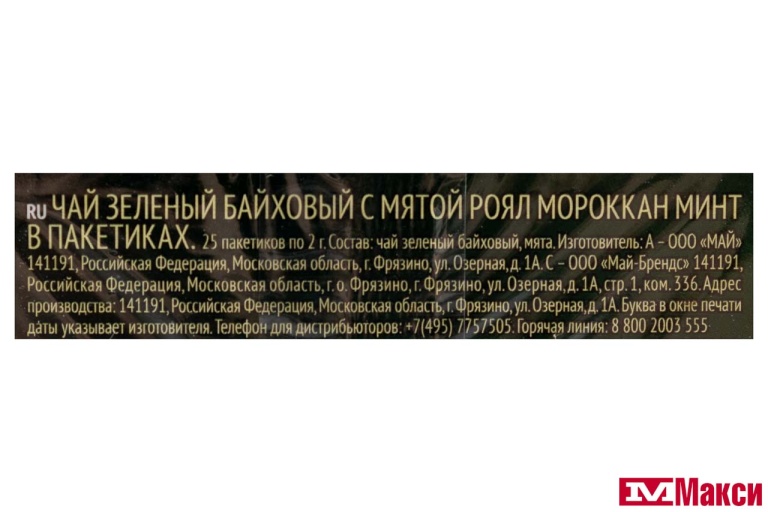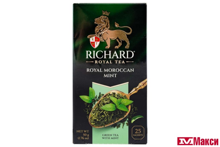 ЧАЙ "RICHARD" ROYAL MOROCCAN MINT ЗЕЛЕНЫЙ АРОМАТИЗИРОВАННЫЙ 25ПАКЕТИКОВ-САШЕТ (МАЙ)