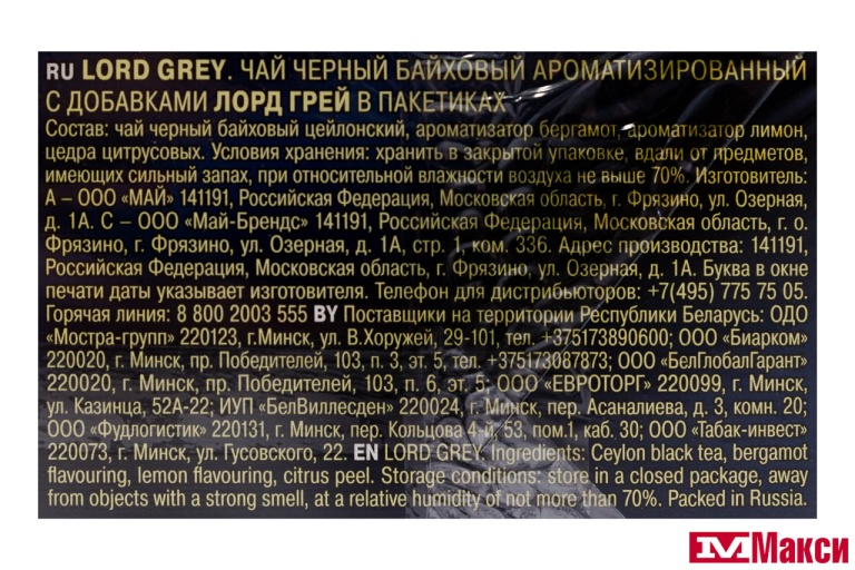 чай черный байховый цейлонский, ароматизатор бергамот, ароматизатор лимон, цедра цитрусовых