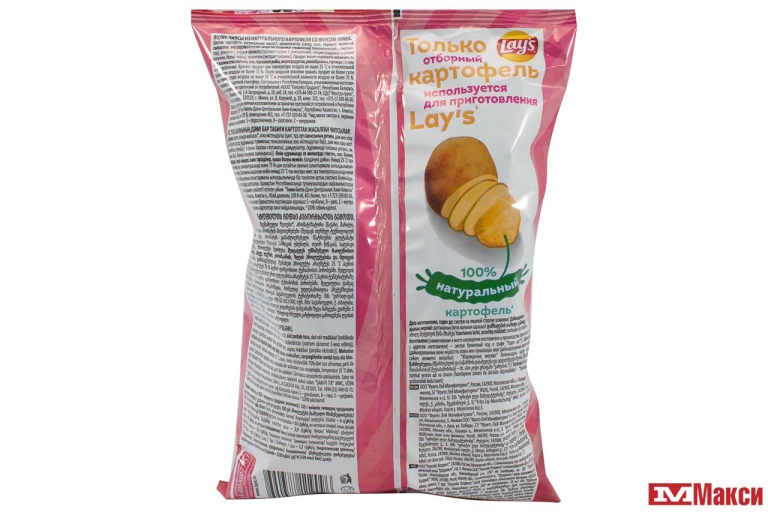 картофель, растительные масла*, ароматизатор [сахар, соль, порошок молочной сыворотки, вкусоароматические вещества (содержат термический технологический ароматизатор), усилитель вкуса и аромата (глутамат натрия 1-замещенный), специи (содержат белый перец), краситель (экстракт паприки)].