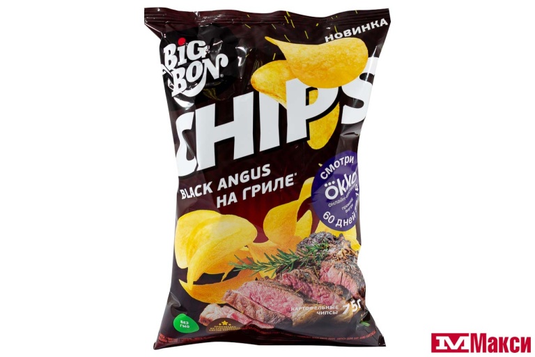 Картофельные чипсы BIGBON CHIPS со вкусом Black angus на гриле — это маленькое путешествие, которое перенесет вас прямо к барбекю-зоне. Уникальный вкус, который сочетает в себе дымные нотки гриля и нежную пикантность высококачественного мяса.