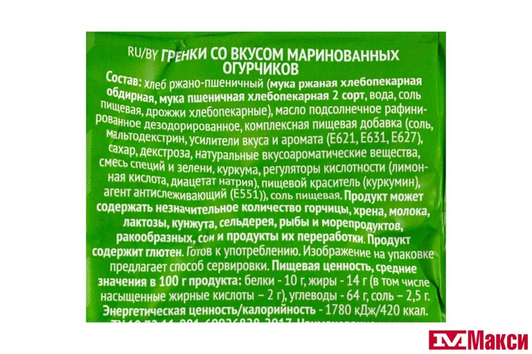 ГРЕНКИ "ФИШКА" МАРИНОВАННЫЕ ОГУРЧИКИ 120Г