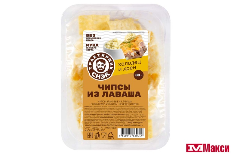 ЧИПСЫ "ТРАКТИРЩИК СНЭК" ИЗ ЛАВАША ХОЛОДЕЦ И ХРЕН 80Г