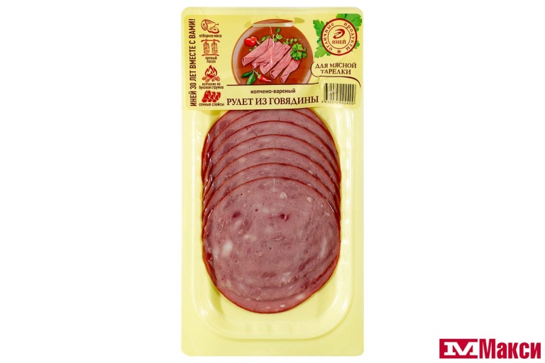 РУЛЕТ ИЗ ГОВЯДИНЫ В/К 80Г В/У НАРЕЗКА (ИНЕЙ)