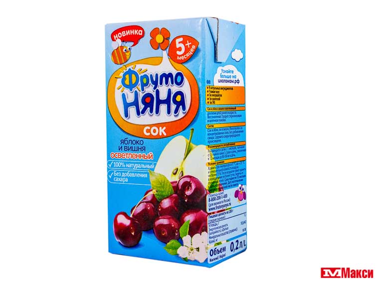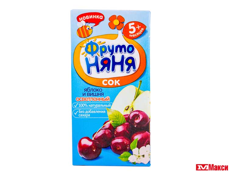 СОК "ФРУТОНЯНЯ" 0,2Л ПАКЕТ (ПРОГРЕСС) (ДЕТСКОЕ ПИТАНИЕ)(яблоко-вишня осветленный) - "яблоко-вишня осветленный"