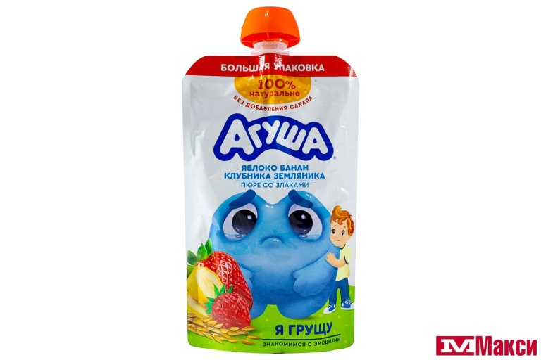 ПЮРЕ "АГУША" ФРУКТОВОЕ 160Г ДОЙ-ПАК (ВБД) (ДЕТСКОЕ ПИТАНИЕ)(яблоко, банан, клубника и земляника со злаками) - "яблоко, банан, клубника и земляника со злаками"