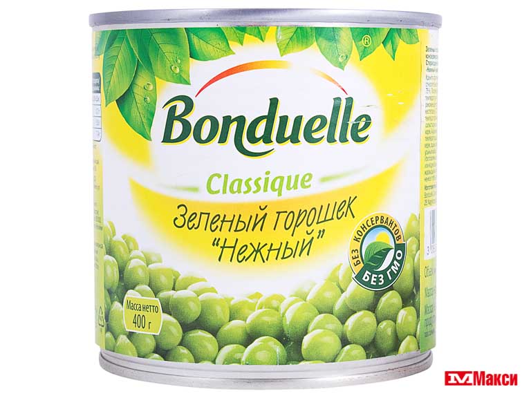 ГОРОШЕК ЗЕЛЕНЫЙ КОНСЕРВИРОВАННЫЙ "БОНДЮЭЛЬ" НЕЖНЫЙ 400Г Ж/Б С КЛЮЧОМ