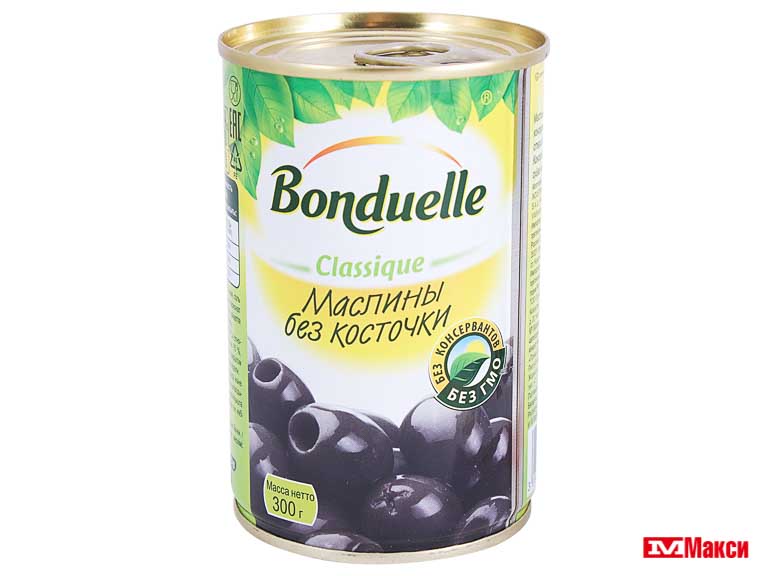 МАСЛИНЫ "БОНДЮЭЛЬ" БЕЗ КОСТОЧКИ 300Г Ж/Б С КЛЮЧОМ