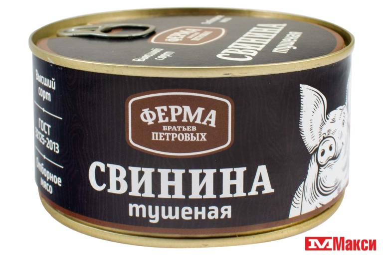 СВИНИНА ТУШЕНАЯ "ФЕРМА БРАТЬЕВ ПЕТРОВЫХ" В/С 325Г Ж/Б