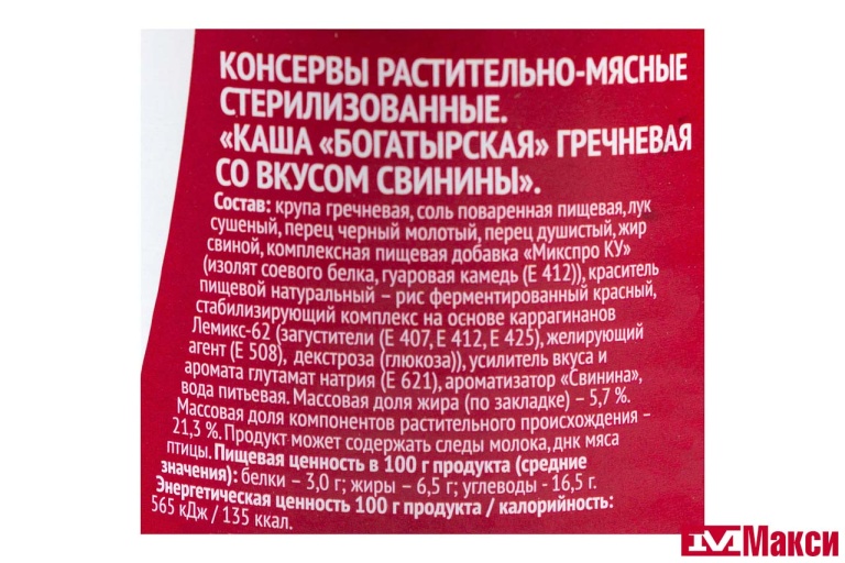 КАША "БОГАТЫРСКАЯ" ГРЕЧНЕВАЯ СО СВИНИНОЙ 340Г (ЯРКАЯ ЦЕНА)