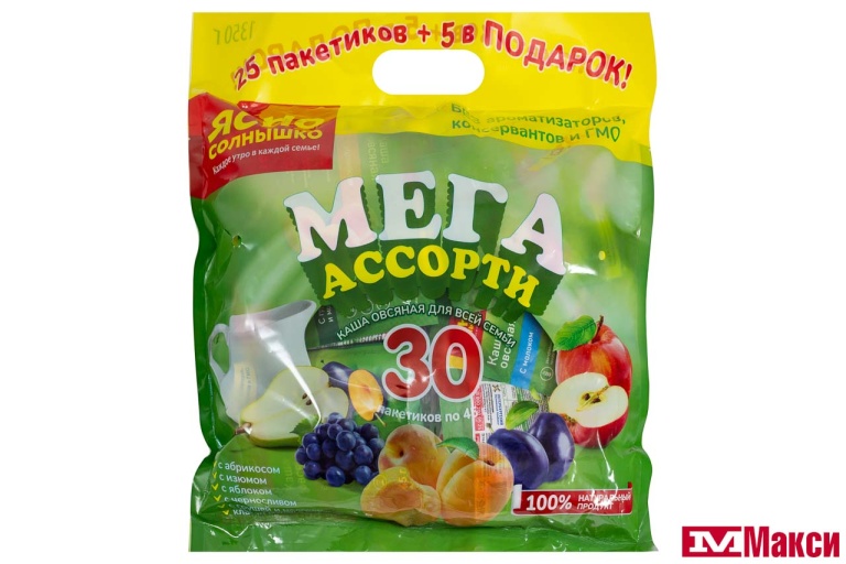 КАША БЫСТРОГО ПРИГОТОВЛЕНИЯ "ЯСНО СОЛНЫШКО" ОВСЯНАЯ МЕГА АССОРТИ 35ГХ30ШТ