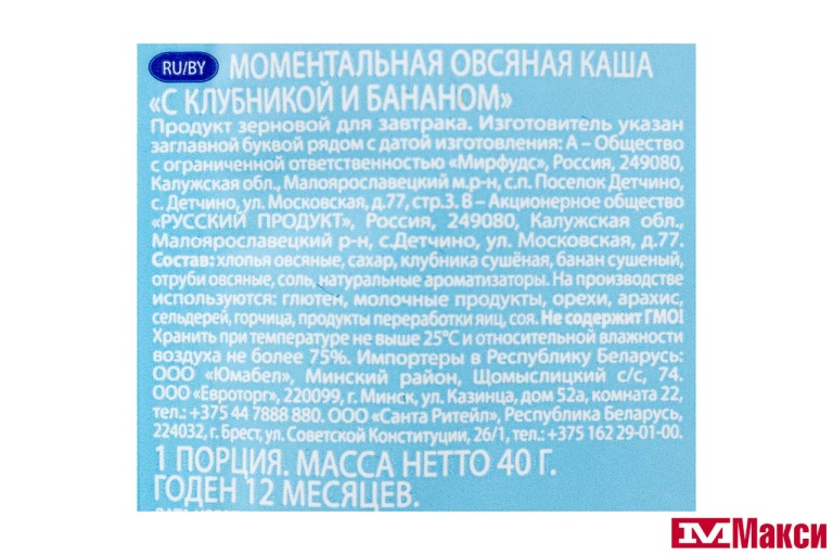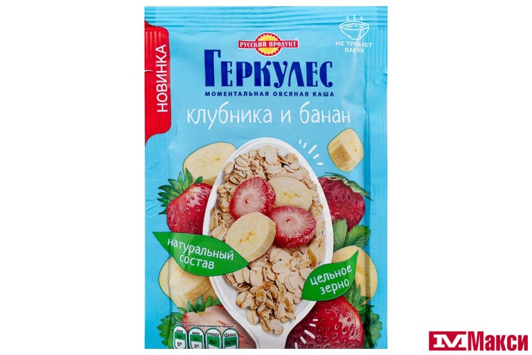 КАША "ГЕРКУЛЕС" МОМЕНТАЛЬНАЯ ОВСЯНАЯ С КЛУБНИКОЙ И БАНАНОМ 40Г (РУС.ПРОДУКТ)