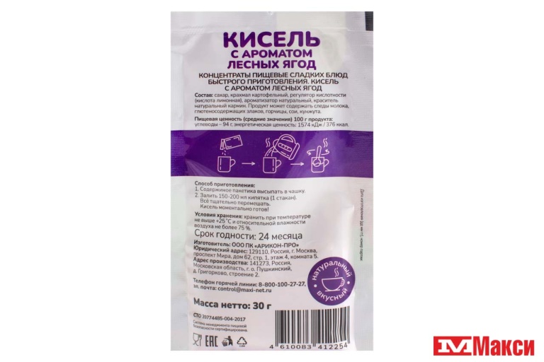КИСЕЛЬ (СЕМЬЯ ДОВОЛЬНА) 30Г(с ароматом лесной ягоды) - "с ароматом лесной ягоды"