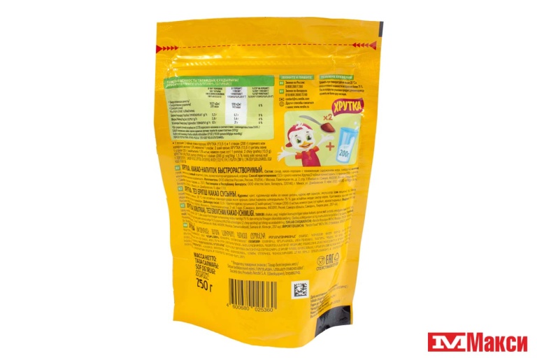 КАКАО-НАПИТОК "ХРУТКА" БЫСТРОРАСТВОРИМЫЙ 250Г ПАКЕТ (NESTLE)