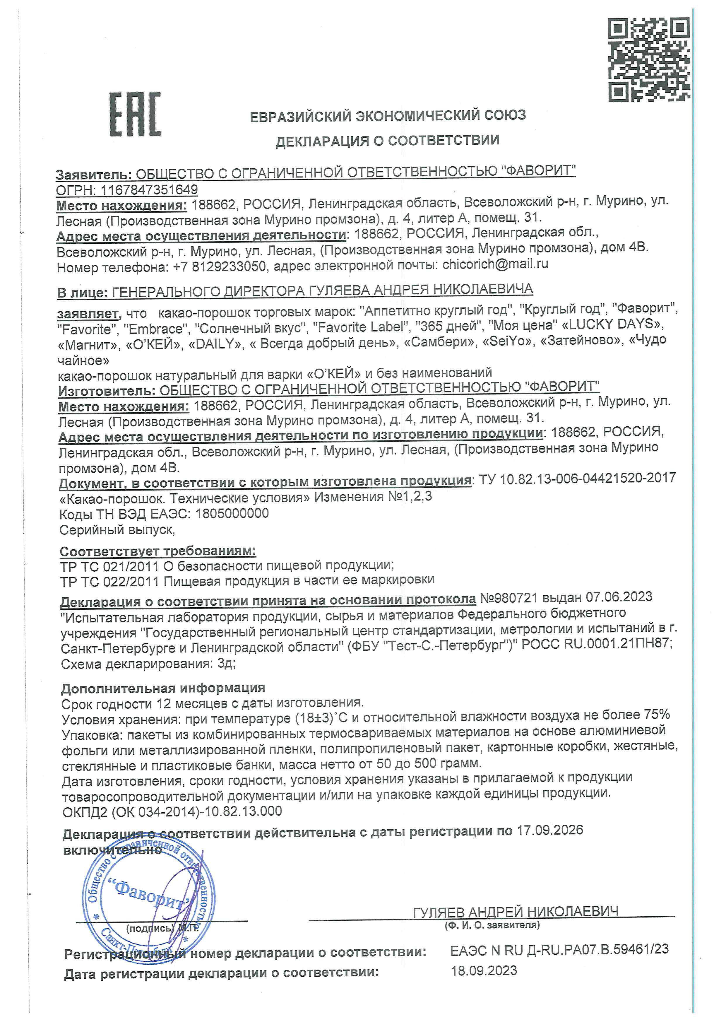 КАКАО-ПОРОШОК "ФАВОРИТ" 100Г