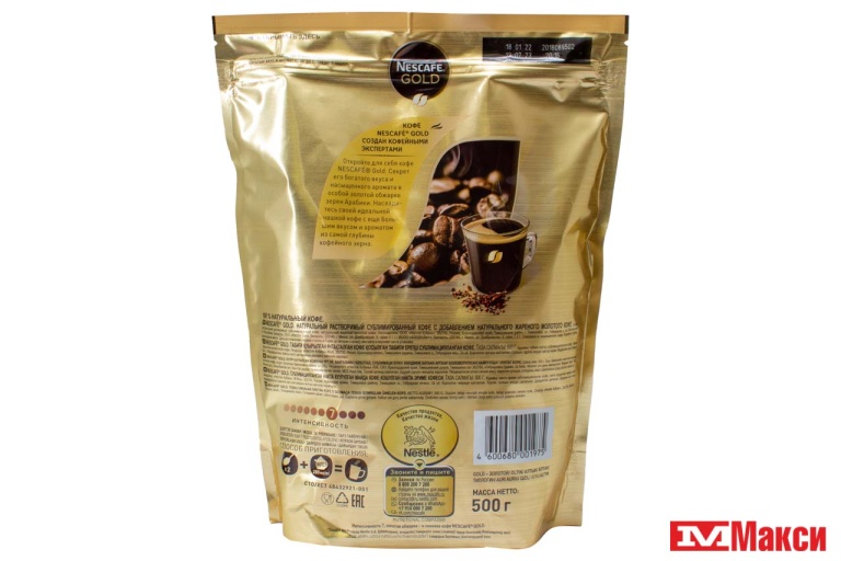 КОФЕ СУБЛИМИРОВАННЫЙ "NESCAFE GOLD" С ДОБАВЛЕНИЕМ МОЛОТОГО 500Г ПАКЕТ (NESTLE)