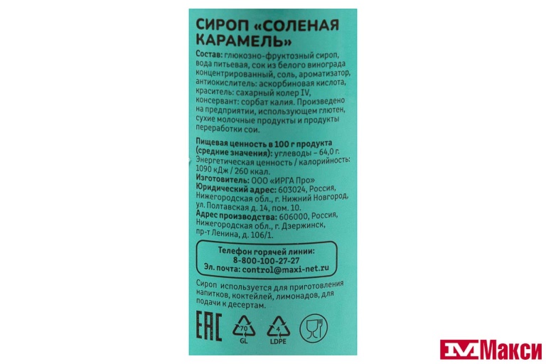 сахар, вода, сок из белого винограда концентрированный, соль, ароматизатор, антиокислитель: аскорбиновая кислота, краситель: сахарный колер I, консервант: сорбат калия