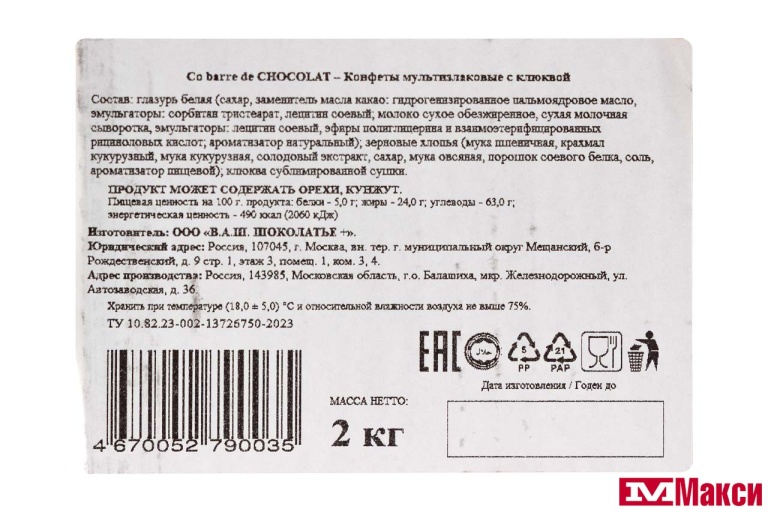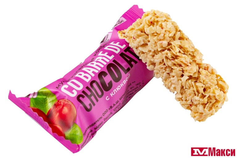 КОНФ. "CO BARRE DE CHOCOLAT" МУЛЬТИЗЛАКОВЫЕ С КЛЮКВОЙ (В.А.Ш ШОКОЛАТЬЕ)