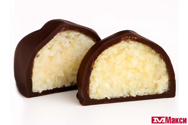 Легкая кремовая начинка с нежной мякотью кокоса в темной глазури.