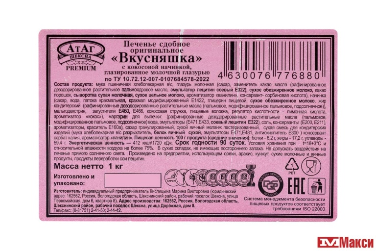 ПЕЧЕНЬЕ "ВКУСНЯШКА" С КОКОСОВОЙ НАЧИНКОЙ 1КГ (АТАГ)
