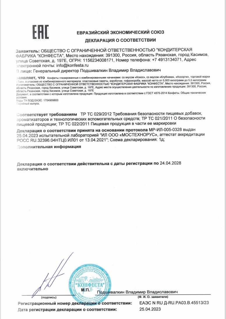 Глазированные конфеты с нежной кремовой начинкой на основе хрустящего воздушного рисового шарика с сахарной корочкой.