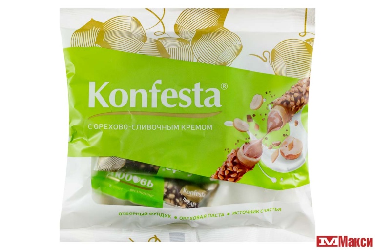 КОНФЕТЫ ГЛАЗИРОВАННЫЕ "KONFESTA" С ОРЕХОВО-СЛИВОЧНОЙ НАЧИНКОЙ 180Г (КОНФЕСТА)