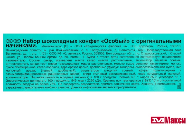 ШОК.КОНФ. (КРУПСКАЯ) "ОСОБЫЙ" С ОРИГИНАЛЬНЫМИ НАЧИНКАМИ 183Г