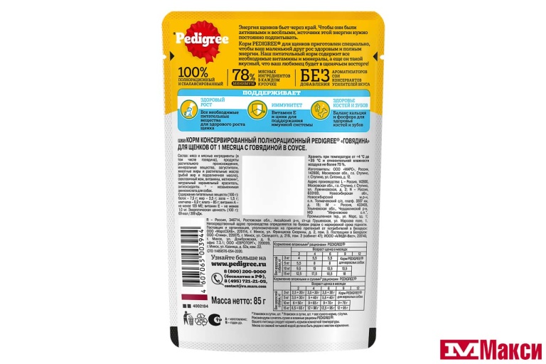 КОРМ Д/ЩЕНКОВ "ПЕДИГРИ" 85Г ПАУЧ В АССОРТ.(говядина в соусе) - "говядина в соусе"