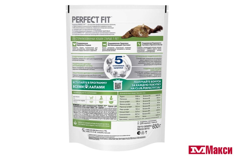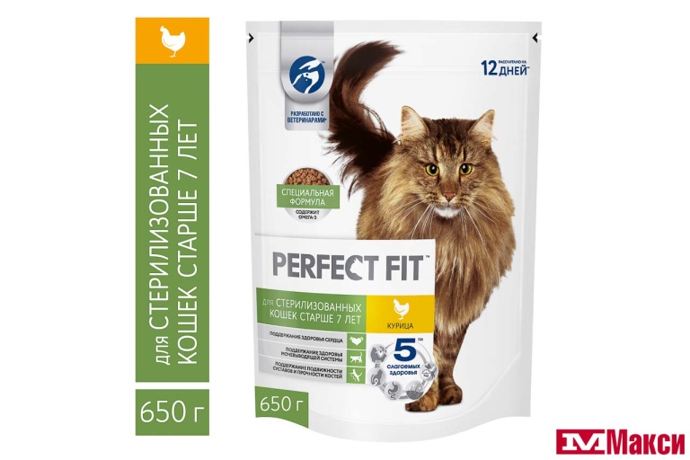 КОРМ ДЛЯ КОШЕК СУХОЙ "PERFECT FIT" 650Г ПАКЕТ(для кошек старше 7 лет с курицей) - "для кошек старше 7 лет с курицей"