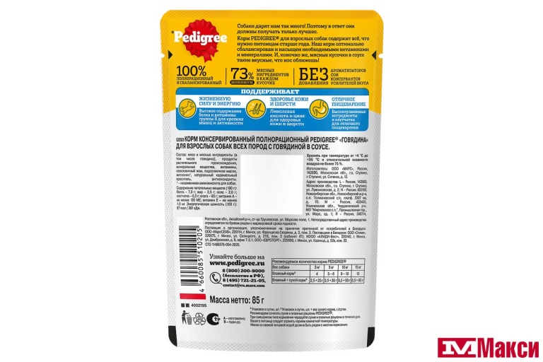 КОРМ ДЛЯ СОБАК "ПЕДИГРИ" ДЛЯ ВЗРОСЛЫХ СОБАК 85Г(с говядиной в соусе) - "с говядиной в соусе"