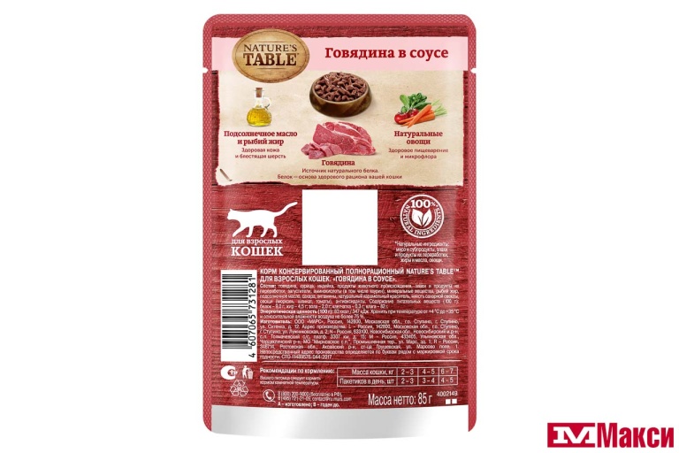 КОРМ Д/КОШЕК "NATURE'S TABLE" В СОУСЕ 85Г В АССОРТ.(говядина) - "говядина"