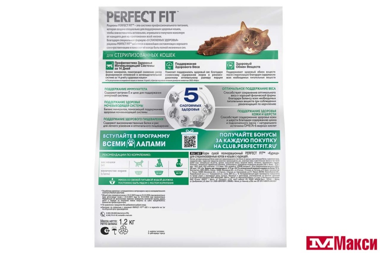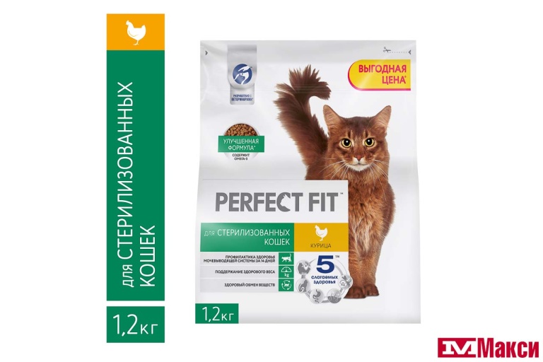 КОРМ Д/КОШЕК "PERFECT FIT" 1,2КГ В АССОРТ. (для стерилизованных котов и кошек с курицей) - "для стерилизованных котов и кошек с курицей"