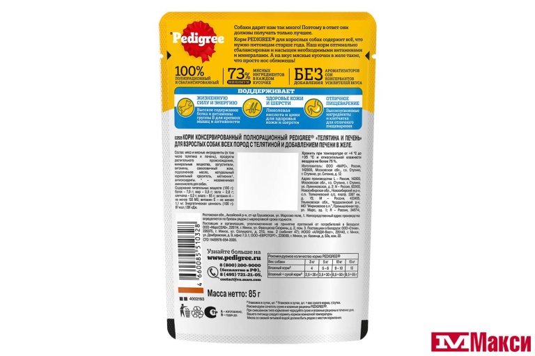КОРМ ДЛЯ СОБАК "ПЕДИГРИ" ДЛЯ ВЗРОСЛЫХ СОБАК 85Г(с телятиной и печенью в желе) - "с телятиной и печенью в желе"