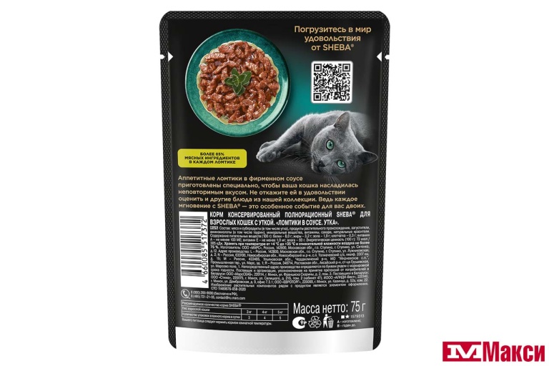 КОРМ ДЛЯ КОШЕК "ШЕБА" 75Г(ломтики в соусе. утка) - "ломтики в соусе. утка"