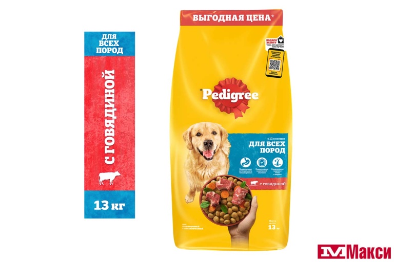 КОРМ "ПЕДИГРИ" ДЛЯ ВЗРОСЛЫХ СОБАК ВСЕХ ПОРОД С ГОВЯДИНОЙ 13КГ