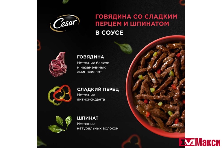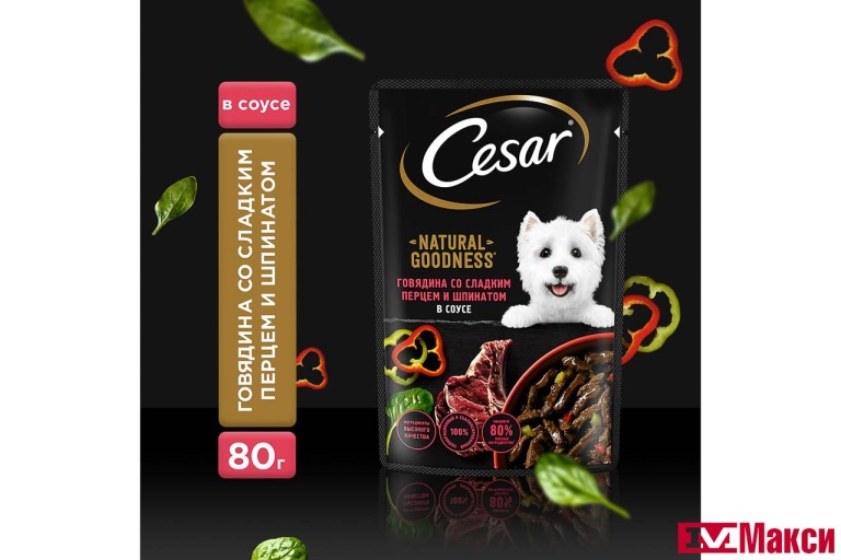 КОРМ ДЛЯ СОБАК "CESAR" 80Г ПАУЧ (с говядиной, паприкой и шпинатом в соусе) - "с говядиной, паприкой и шпинатом в соусе"