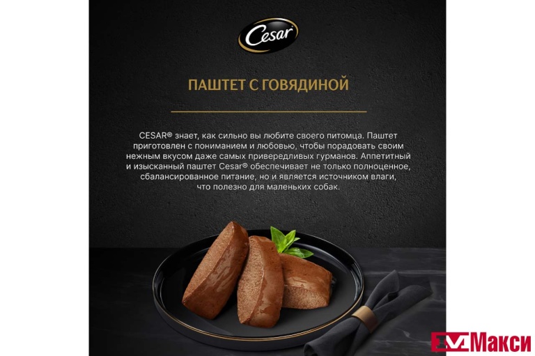Нежный мясной паштет, покрытый тонким слоем ароматного желе. Он приготовлен с любовью и заботой, чтобы порадовать своим нежным вкусом даже самых искушенных гурманов. Аппетитный и изысканный паштет не только обеспечивает полноценное, сбалансированное питание, но и является источником влаги, полезной для собак мелких пород.