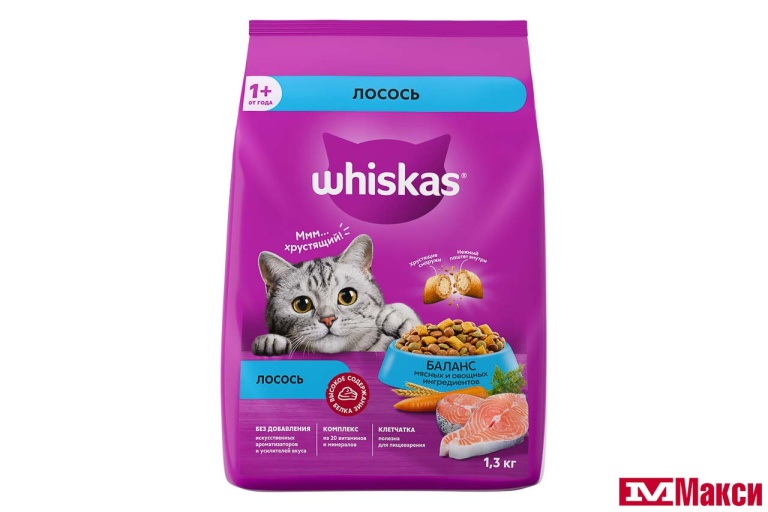 КОРМ ДЛЯ КОШЕК "ВИСКАС" ВКУСНЫЕ ПОДУШЕЧКИ 1,3КГ(д/взрослых кошек/аппетитный обед с лососем) - "д/взрослых кошек/аппетитный обед с лососем"