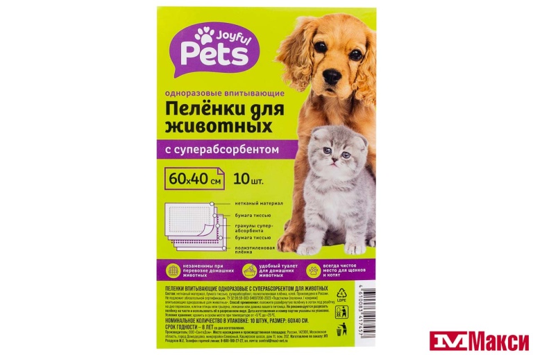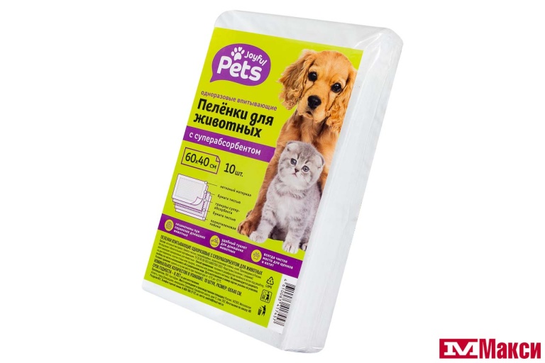 ПЕЛЕНКИ "JOYFUL PETS" Д/ДОМАШНИХ ЖИВОТНЫХ С СУПЕРАБСОРБЕНТОМ 60Х40СМ 10ШТ