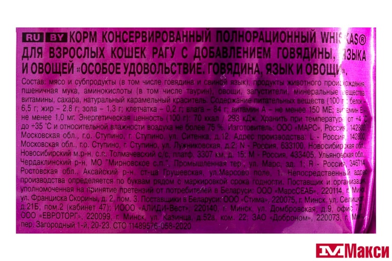 КОРМ Д/КОШЕК "ВИСКАС" ОСОБОЕ УДОВОЛЬСТВИЕ 75Г ФОЛЬГА(рагу говядина, язык и овощи) - "рагу говядина, язык и овощи"