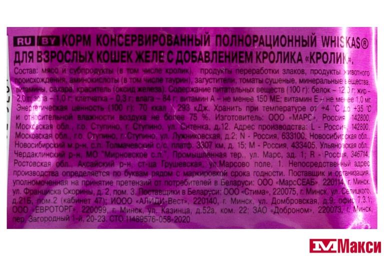 КОРМ ДЛЯ КОШЕК "ВИСКАС" 75Г ФОЛЬГА(желе кролик) - "желе кролик"