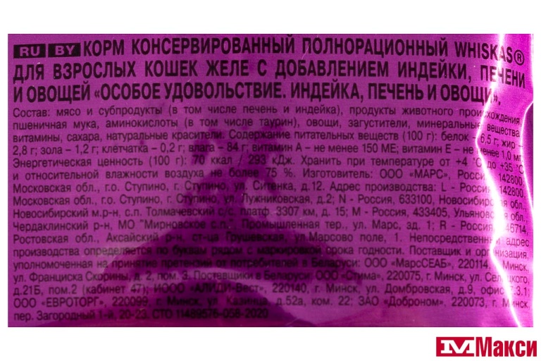 КОРМ Д/КОШЕК "ВИСКАС" ОСОБОЕ УДОВОЛЬСТВИЕ 75Г ФОЛЬГА(желе индейка, печень и овощи) - "желе индейка, печень и овощи"