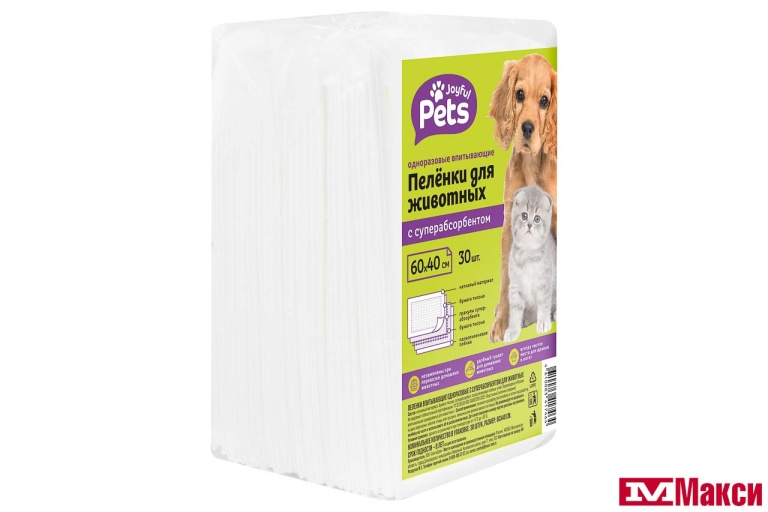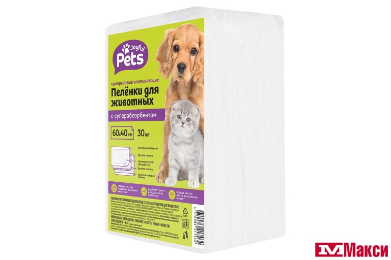ПЕЛЕНКИ "JOYFUL PETS" Д/ДОМАШНИХ ЖИВОТНЫХ С СУПЕРАБСОРБЕНТОМ 60Х40СМ 30ШТ
